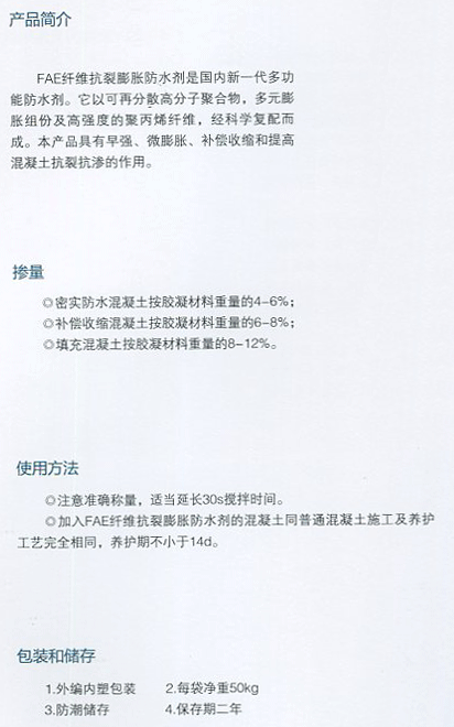 FAE纖維抗裂膨脹防水劑